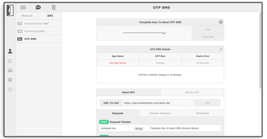 Use One Time Passwords (OTP's) to send single use codes for Two-Factor Authentication (2FA) or other high value transactions. OTP SMS has a template that allows you to customize fields like App Name, OTP Size, and OTP Expiry Time.
