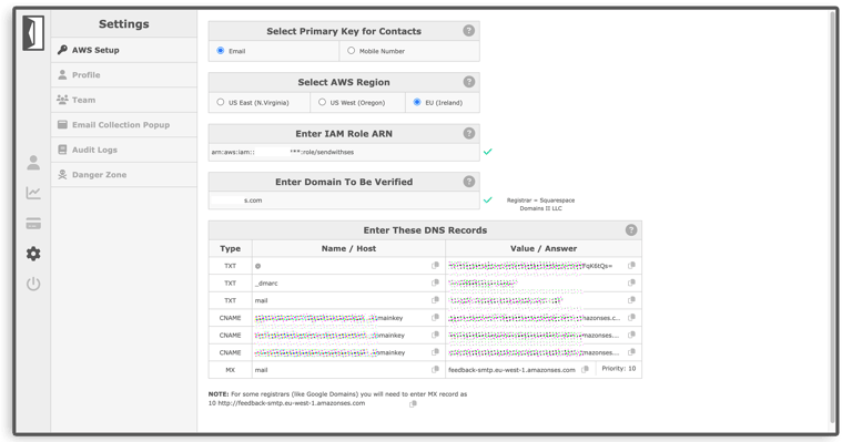 Send With SES makes it easy for you to comply with industry best practices like SPF, DMARC, DKIM so that your emails are delivered to inboxes and not spam folders.